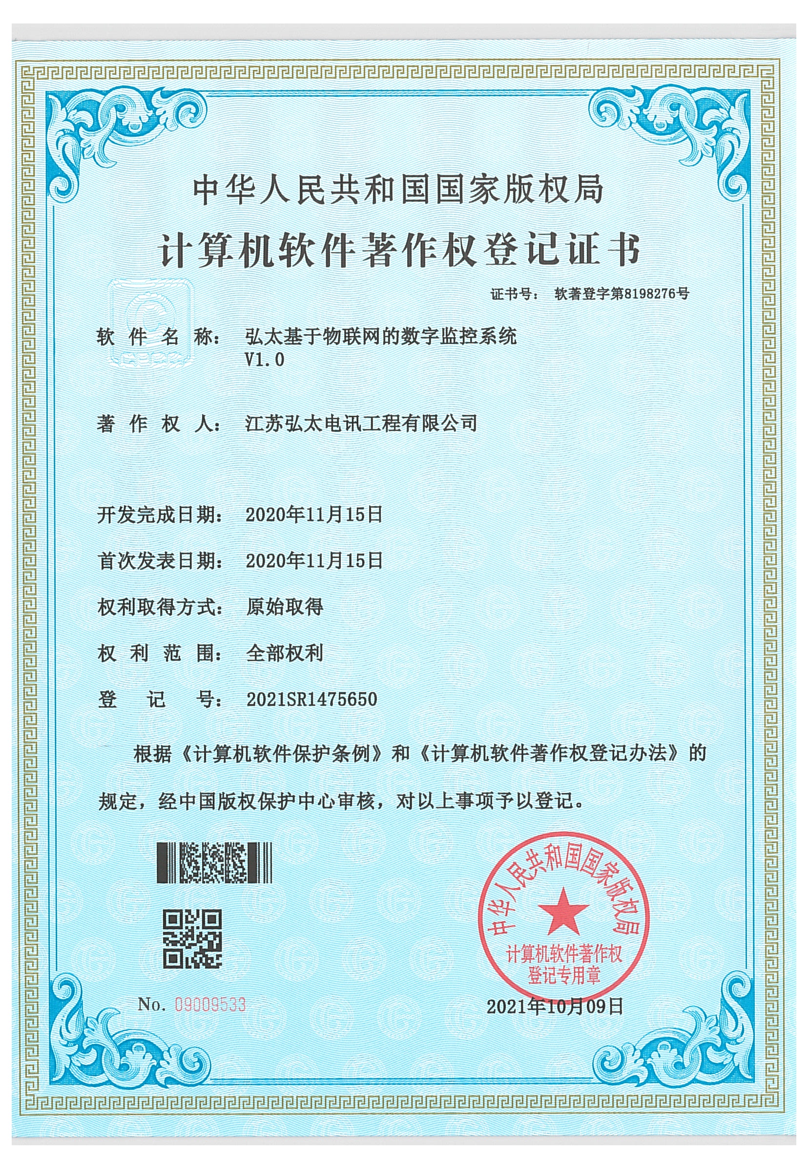 计算机软件著作权登记证书